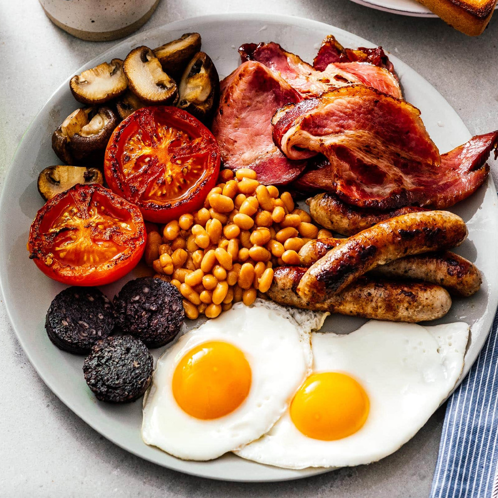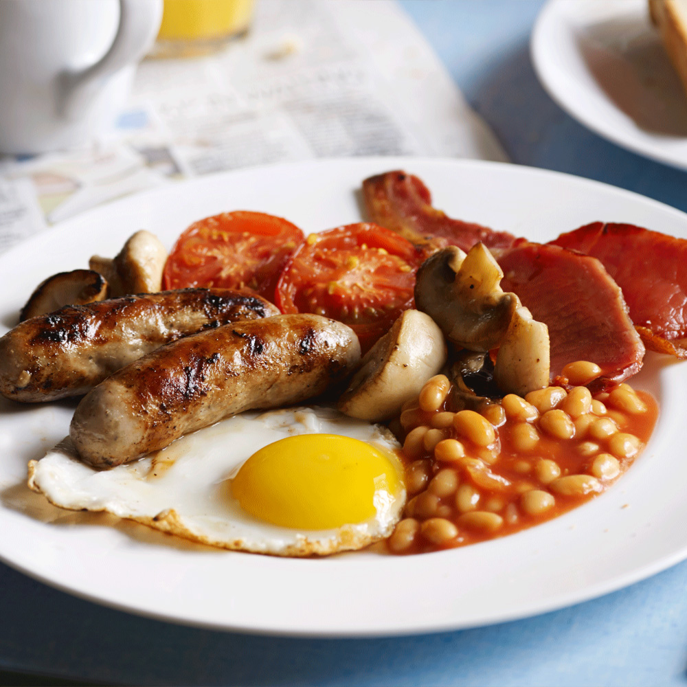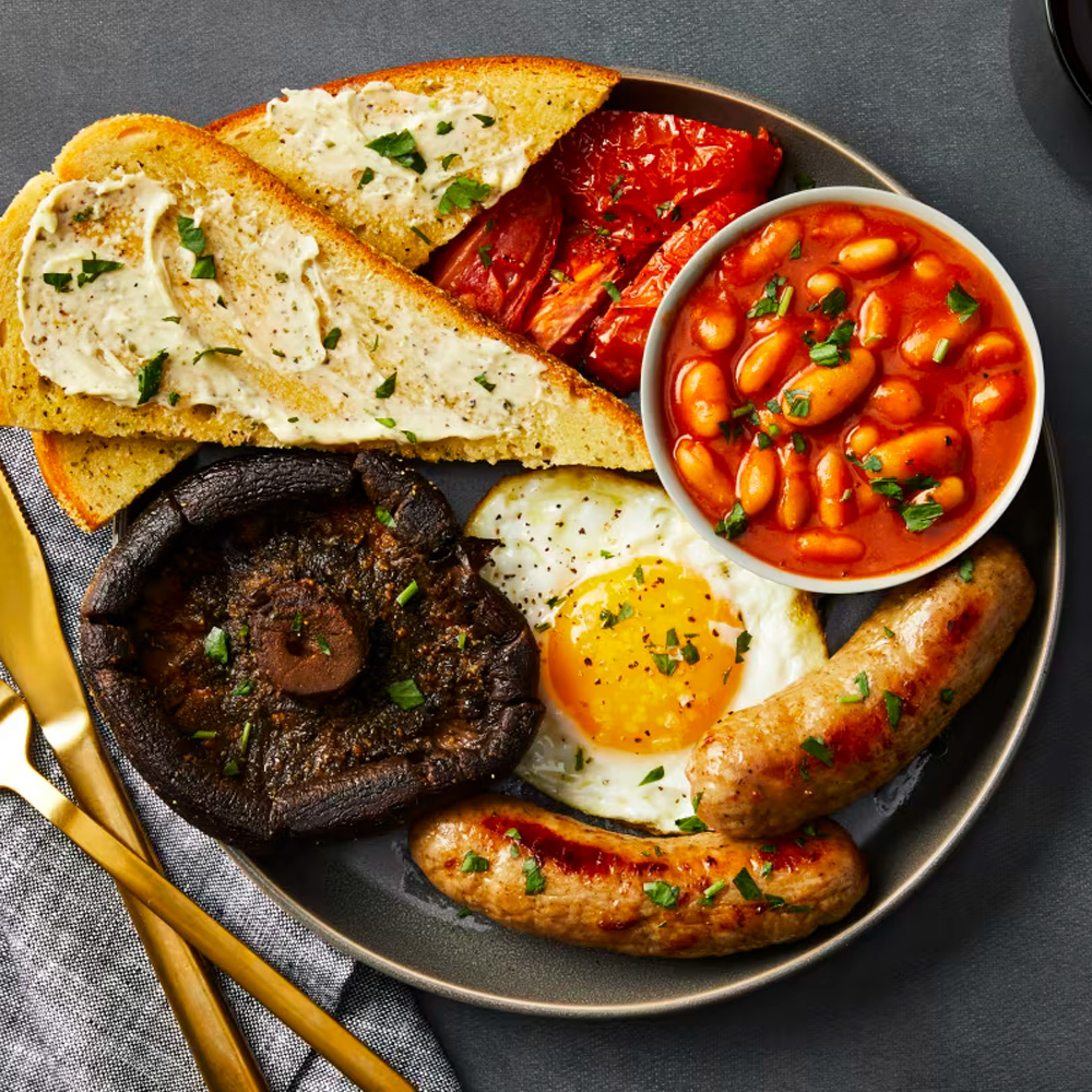 ۲ عدد سوسیس کوکتل ۹۰%، ۲ عدد نیمرو، خوراک لوبیا، قارچ، گوجه، ۲ عدد نان تست