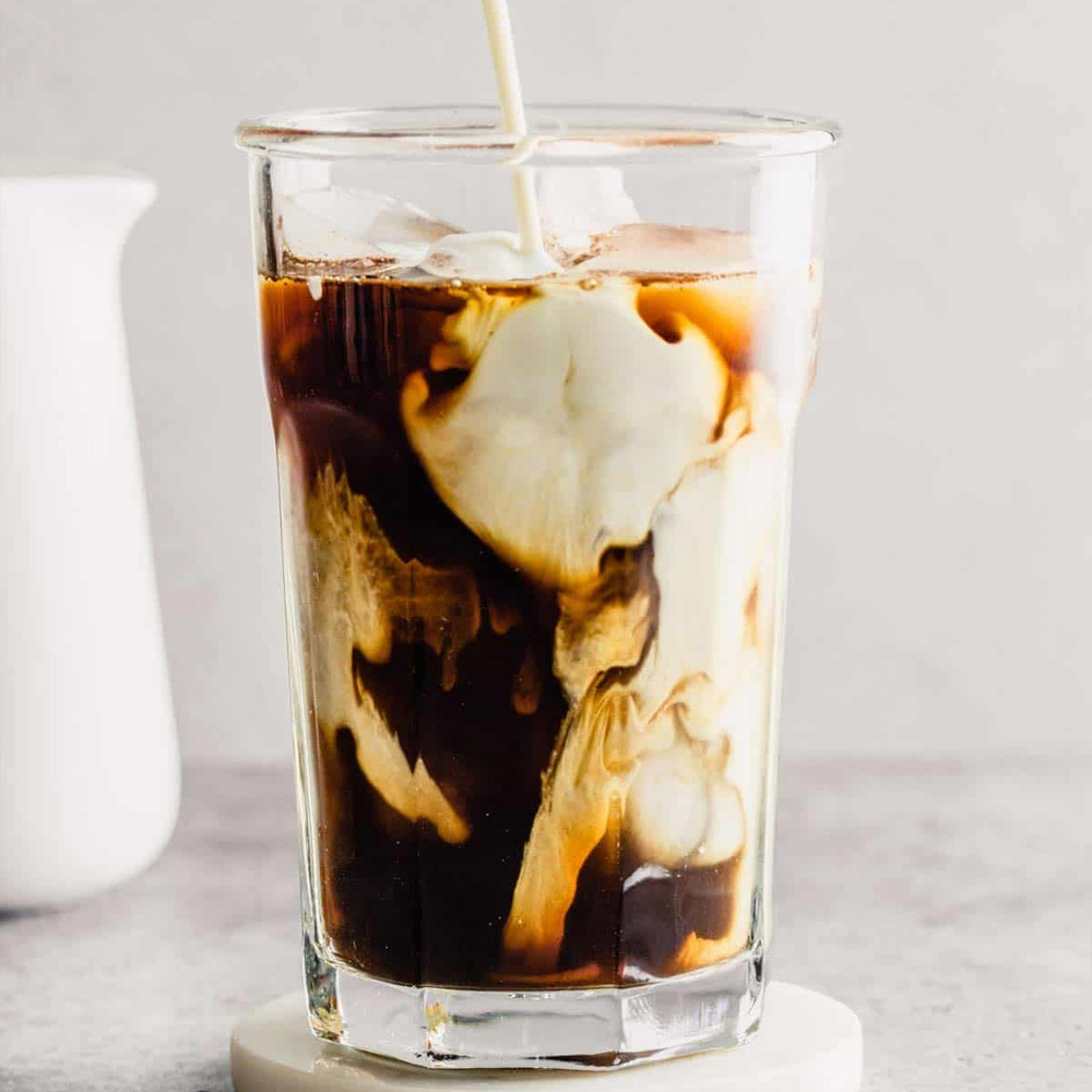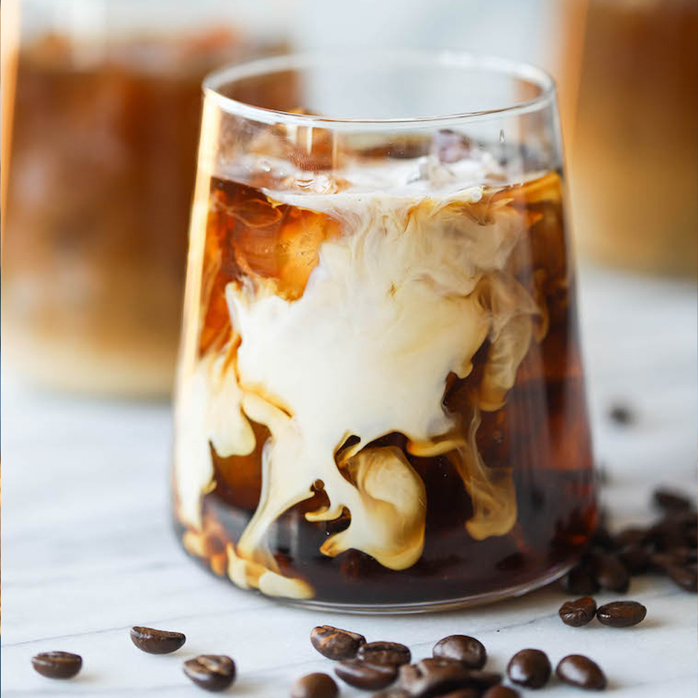 ۳۰۰ میلی لیتر، یک شات اسپرسو ۸۰% عربیکا و ۲۰% روبوستا، فوم شیر، یخ