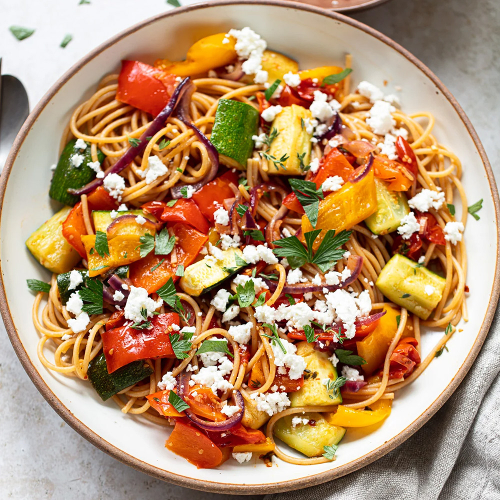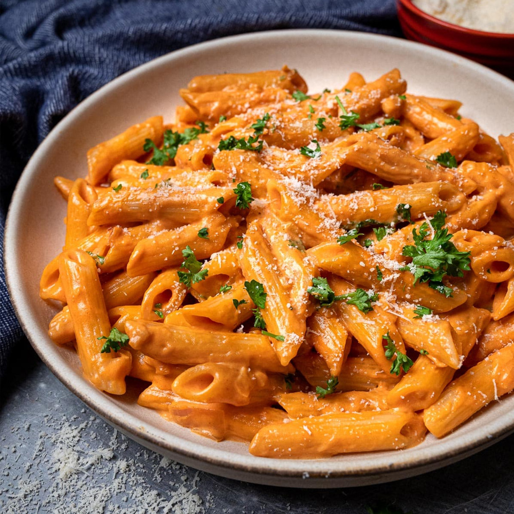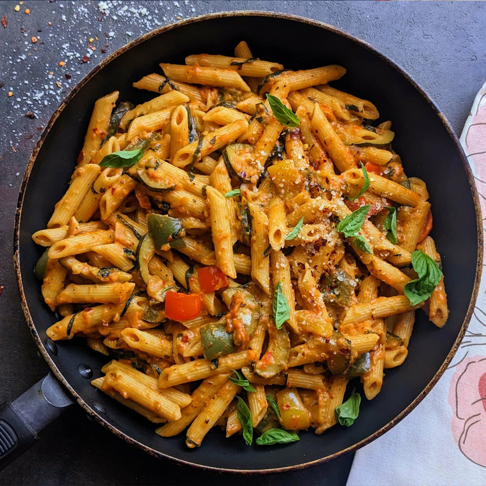۱۵۰ گرم پاستا پنه، کدو، فلفل دلمه ای، قارچ، نخود فرنگی، کلم بروکلی، پاستا پنه، سس آلفردو